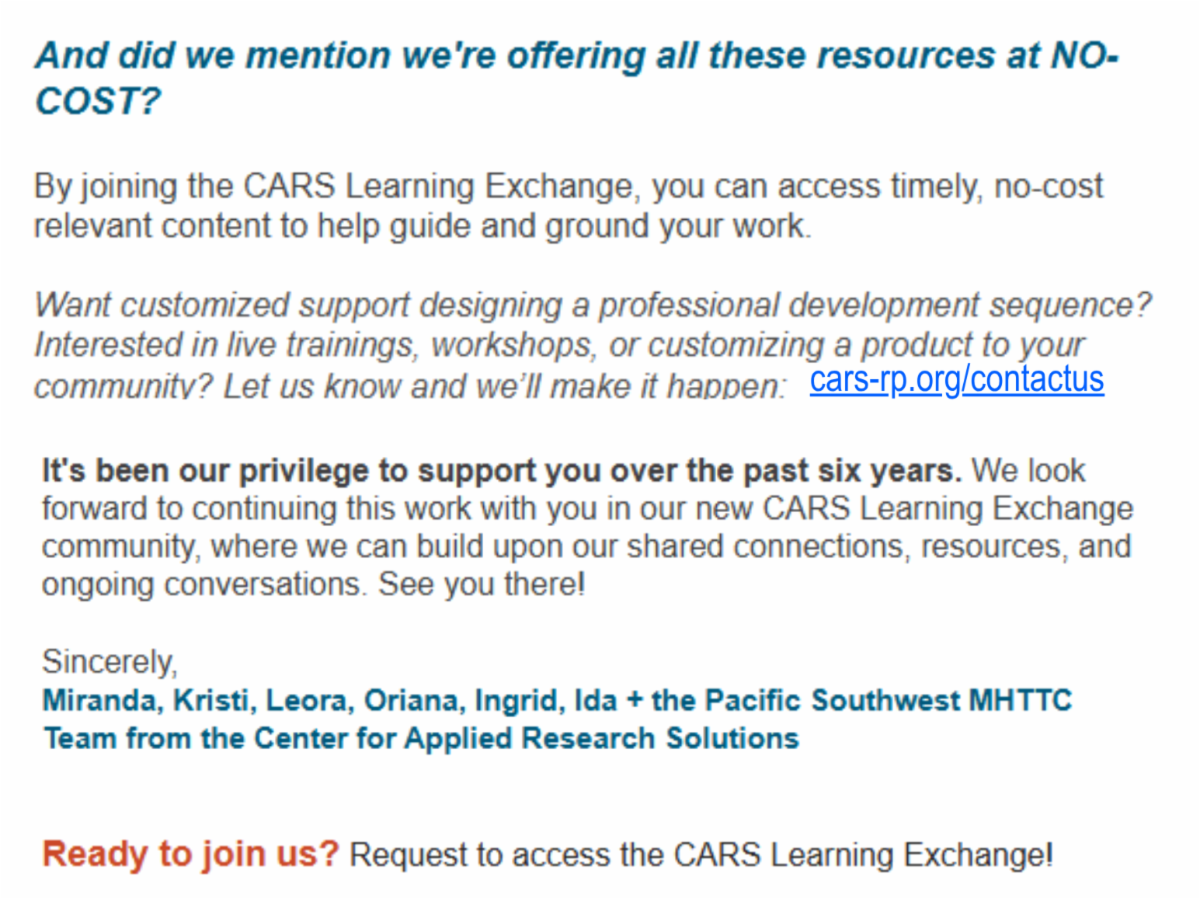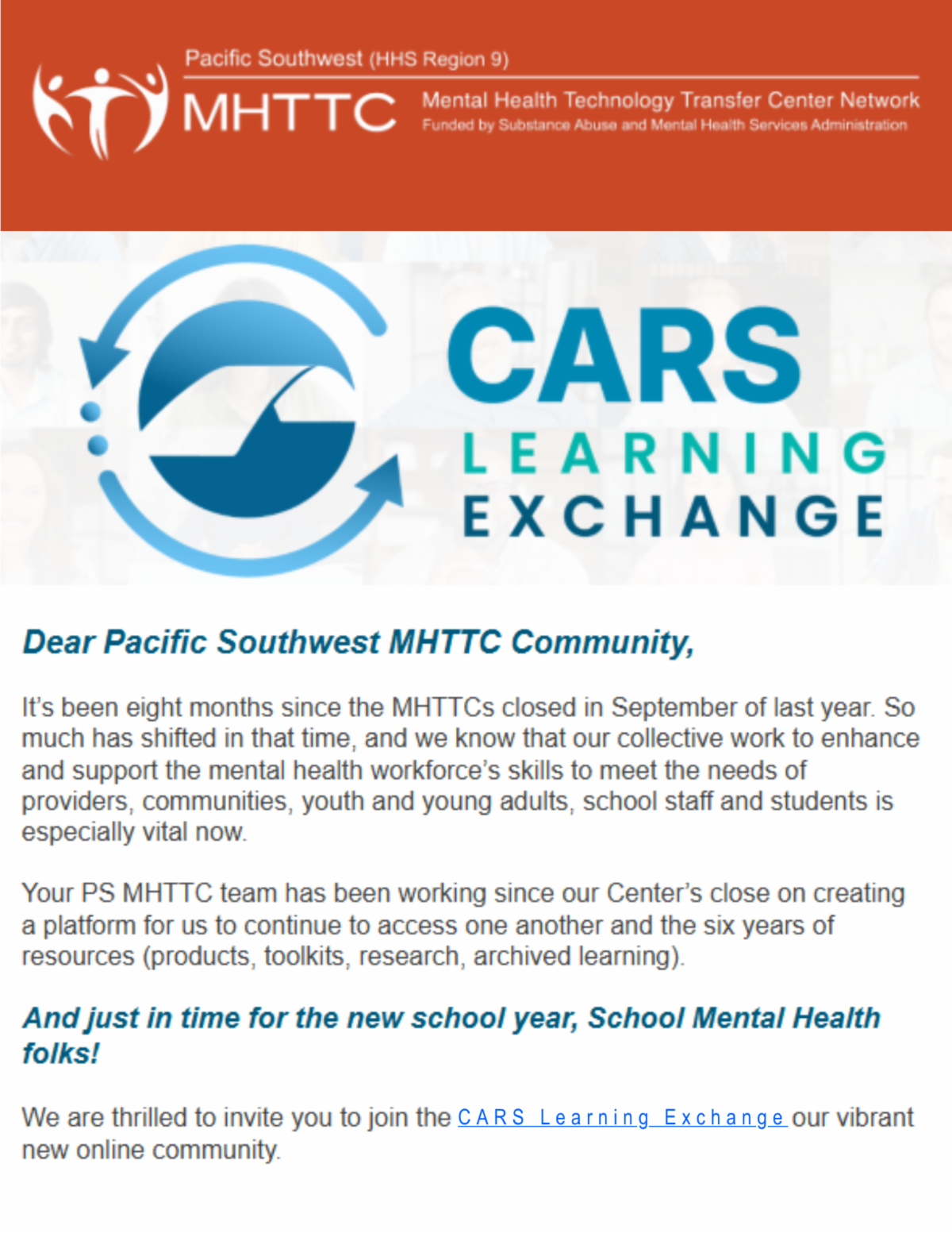 Mental Health Technology Transfer Center Network: CARS Learning Exchange Opportunity