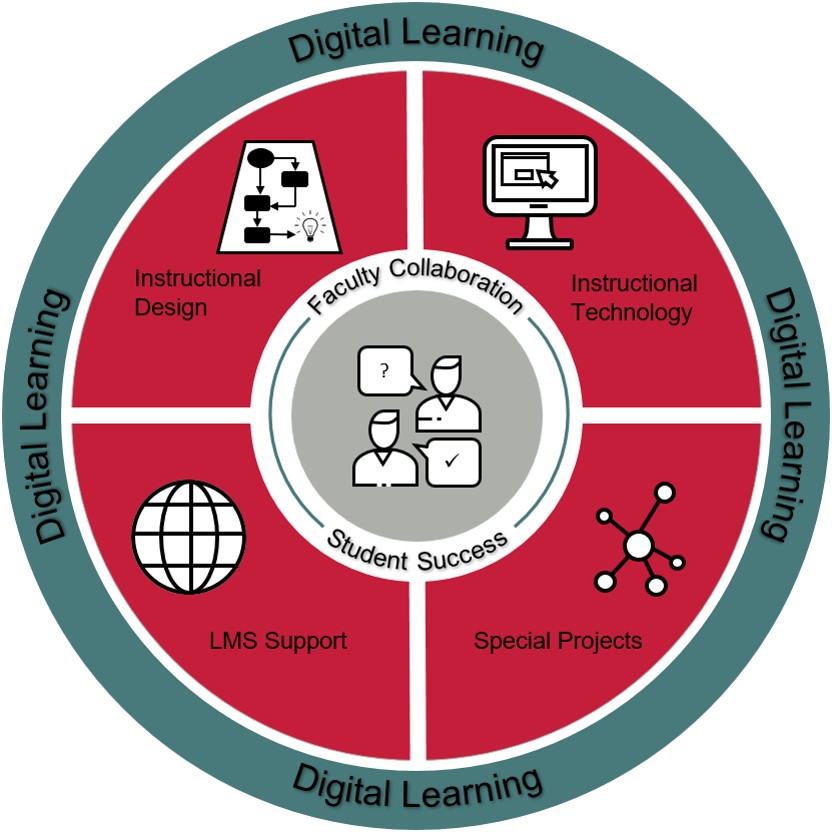 What is that we do here in Distance Education? Our department specializes in digital learning needs of faculty and students. We are a team of professionals focused on customer service and quality output. The DE Circle showcases the key focus areas in our department. We provide Instructional Design services that lead to quality courses, Instructional Technology acquisition, implementation, and support, LMS support, and Special Projects such as TN eCampus, Winter Term, and NC-SARA compliance. We’re happy to collaborate with faculty and staff on ways we can contribute to your student success goals and initiatives.