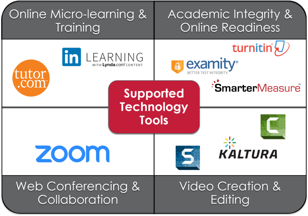 Need a refresher on Distance Education’s tech tool offering? Here are the instructional technologies currently offered and supported by the department. To learn more about them or schedule department/group/individual training sessions, please contact the