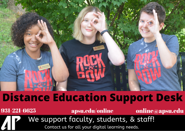 Questions? Contact the Distance Education Support Desk at 931-221-6625 or