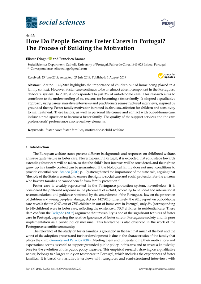 aims to contribute to the understanding of the reasons for becoming a foster family in