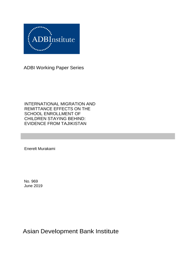 This paper from the Asian Development Bank Institute Working Paper Series explores the impact of international migration on school enrollment of children staying behind in