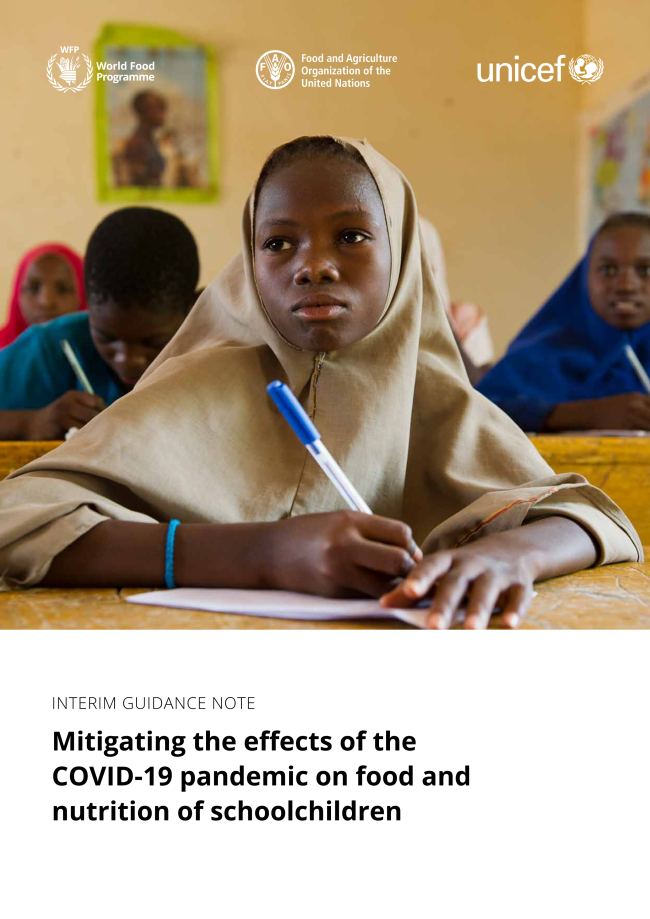 This joint note from the World Food Programme (WFP), the Food and Agriculture Organization (FAO) of the United Nations, and the United Nations Children’s Fund (UNICEF) is aimed at providing preliminary guidance to national and local authorities, school administrators and staff and implementing partners on how to take short-term measures to support, transform or adapt school feeding programmes in their efforts to safeguard the food security and nutritional status of school-aged children, particularly the most vulnerable, during the COVID-19 pandemic.