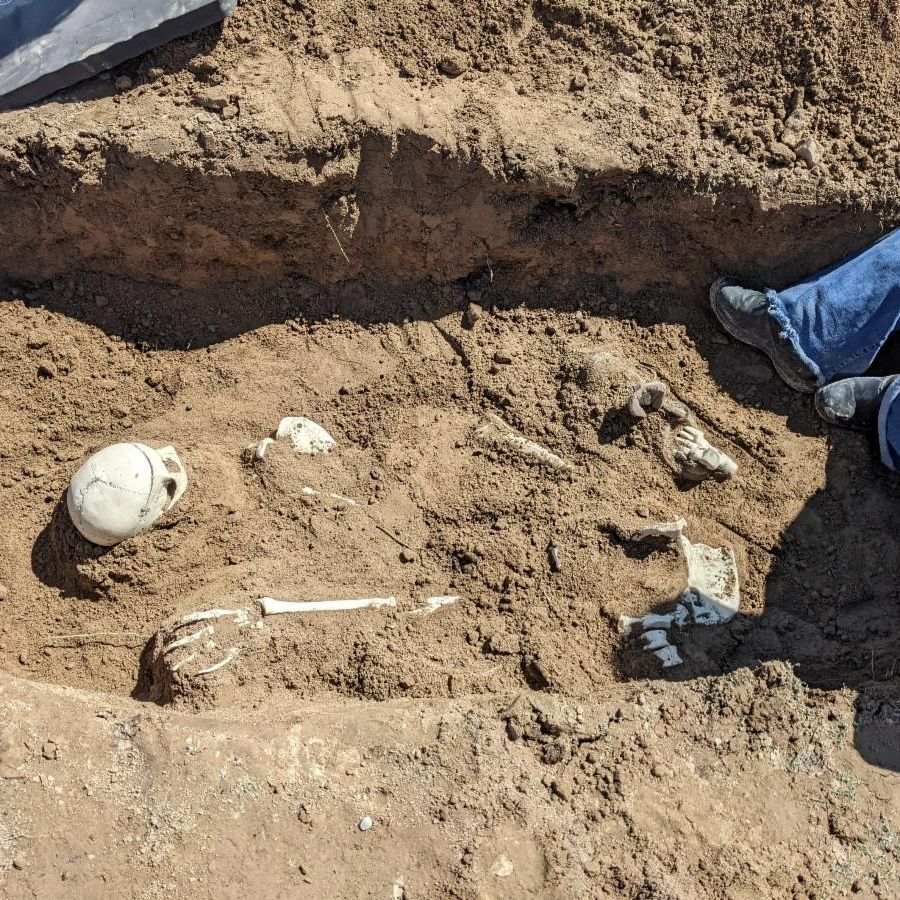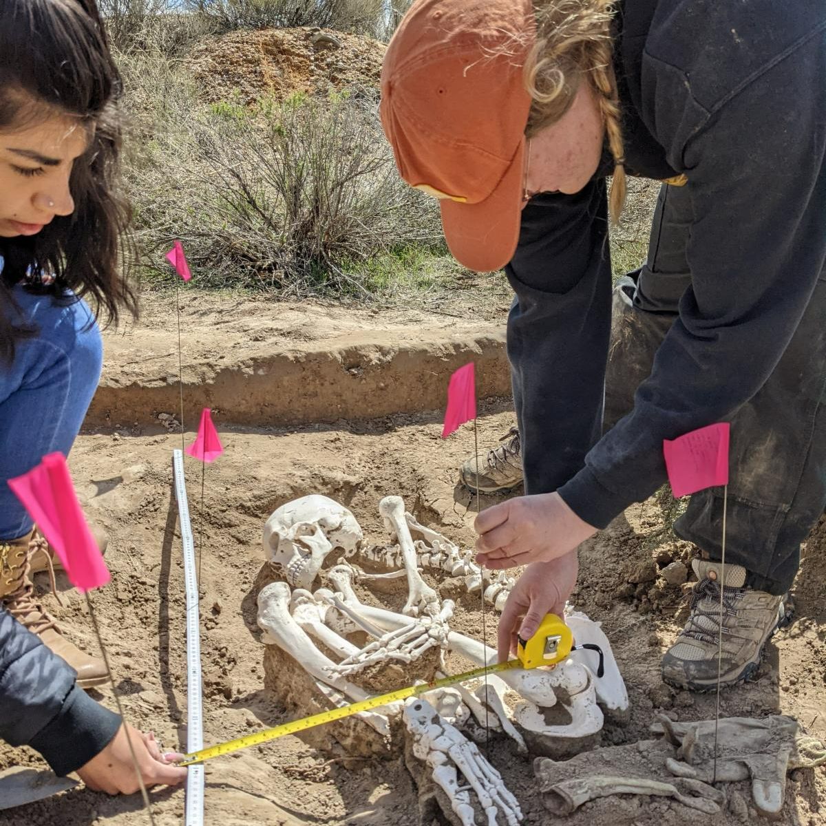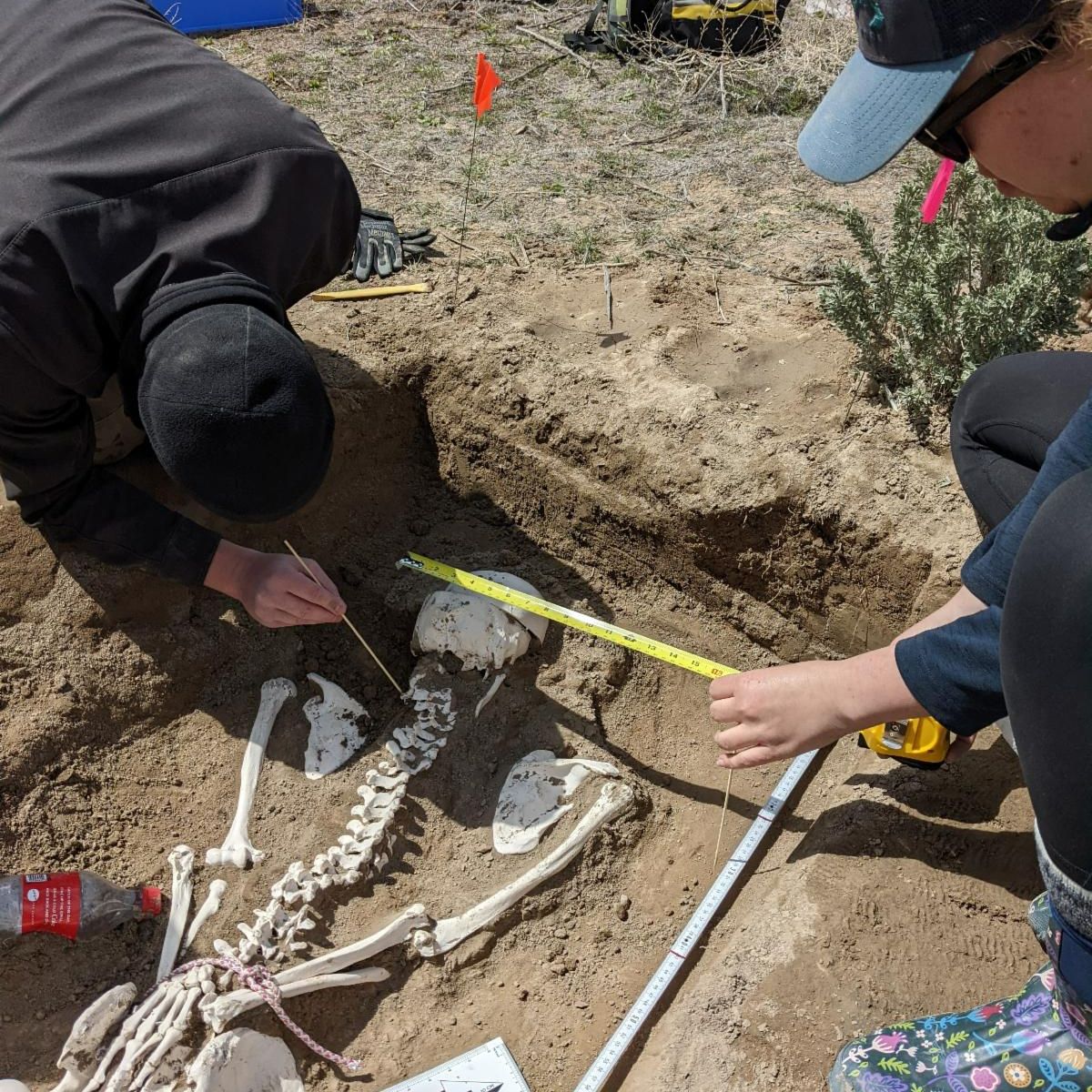 Graduate and undergraduate students from ANTH 4434/5534, Forensic Anthropology and Archaeology, participate in a mock burial excavation this spring. Students learn how to