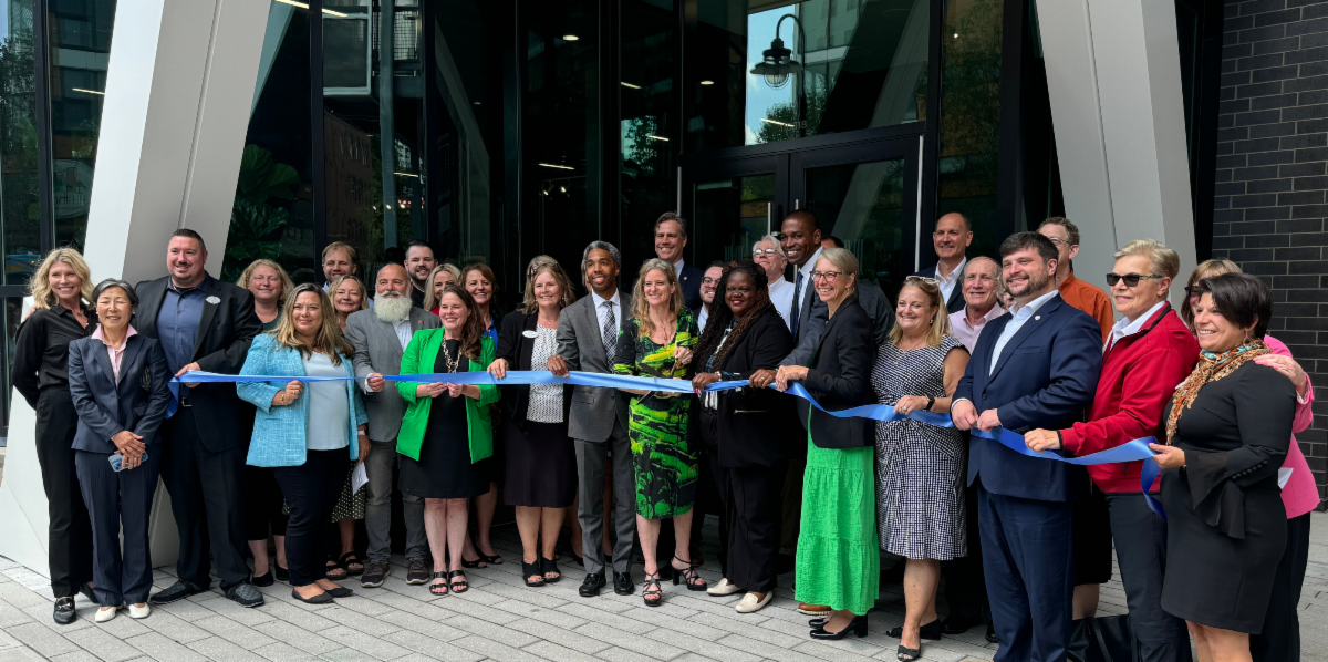 At a recent ribbon-cutting attended by federal, state, and local officials and partners, IAED’s president, Heather McDaniel, delivered remarks focused on “PC: Partnership and Collaboration.” Other distinguished speakers at the event were Robert Cantelmo from the City of Ithaca, Antonio Delgado (NYS Lieutenant Governor), RuthAnne Visnaukis (Homes and Community Renewal Commissioner), Lea Webb (NYS Senate), Anna Kelles (NYS Assembly), Jennifer Tavares (Tompkins County Chamber of Commerce), and Rick Manzardo (Vecino Group).