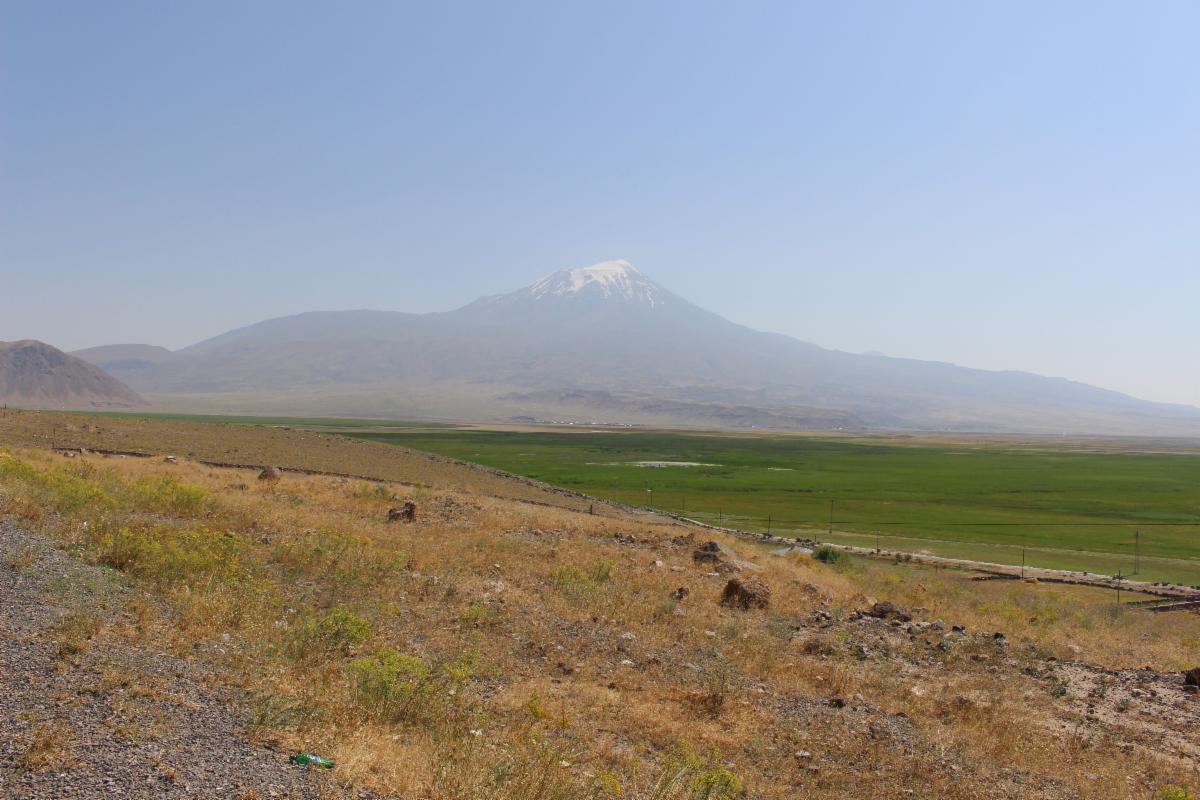Mount Ararat is located where Turkey, Iran, Azerbaijan, and Armenia come together. The highest peak, Greater Ararat, stands at 16,854 feet. There is a second peak next to it, known as Lesser Ararat, which stands at 12,782 feet. These peaks are part of a larger mountain range which stretches within a pocket of land in eastern Turkey. The book of Genesis tells us that Noah's ark "came to rest on the mountains of Ararat" (Genesis 8:4).