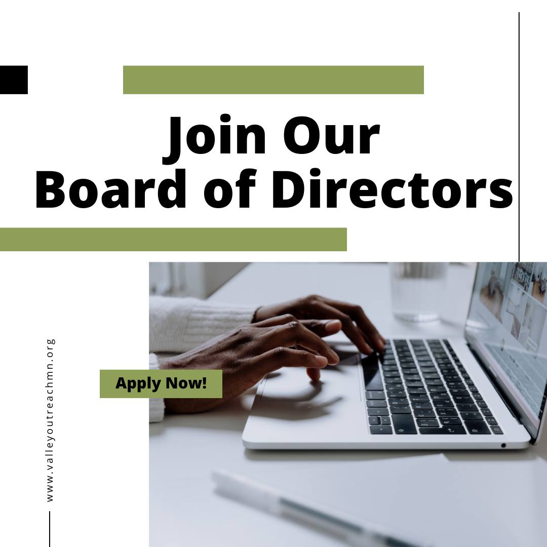 We are seeking a diverse pool of candidates to Join Valley Outreach's Board. In particular, we seek individuals with one or more of the following: