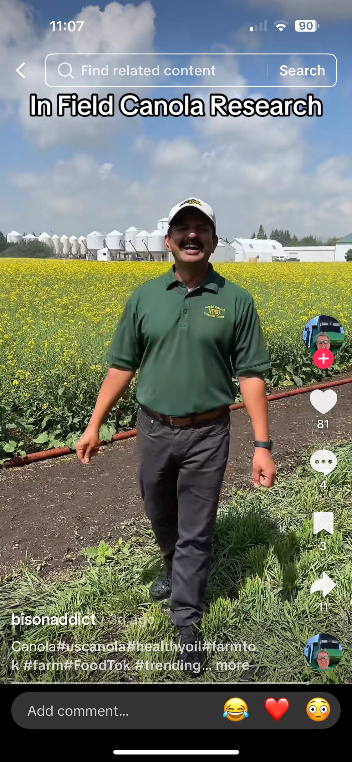 In a recent TikTok video, USCA and Northern Canola Growers Association President Tim Mickelson visits Venkata Chapara, a plant pathologist at the NDSU Research Center in Langdon, ND. Funded by the Northern Canola Growers Association, Chapara demonstrates how he uses an irrigation system to simulate excess moisture in canola fields. This setup helps encourage disease development, particularly white mold, allowing him to better test and compare fungicides, including commercial products, new formulations, and biological options. The goal is to improve canola disease management through real-world, field-based research. The video also provides a brief glimpse of the irrigation setup and acknowledges the research team's efforts.