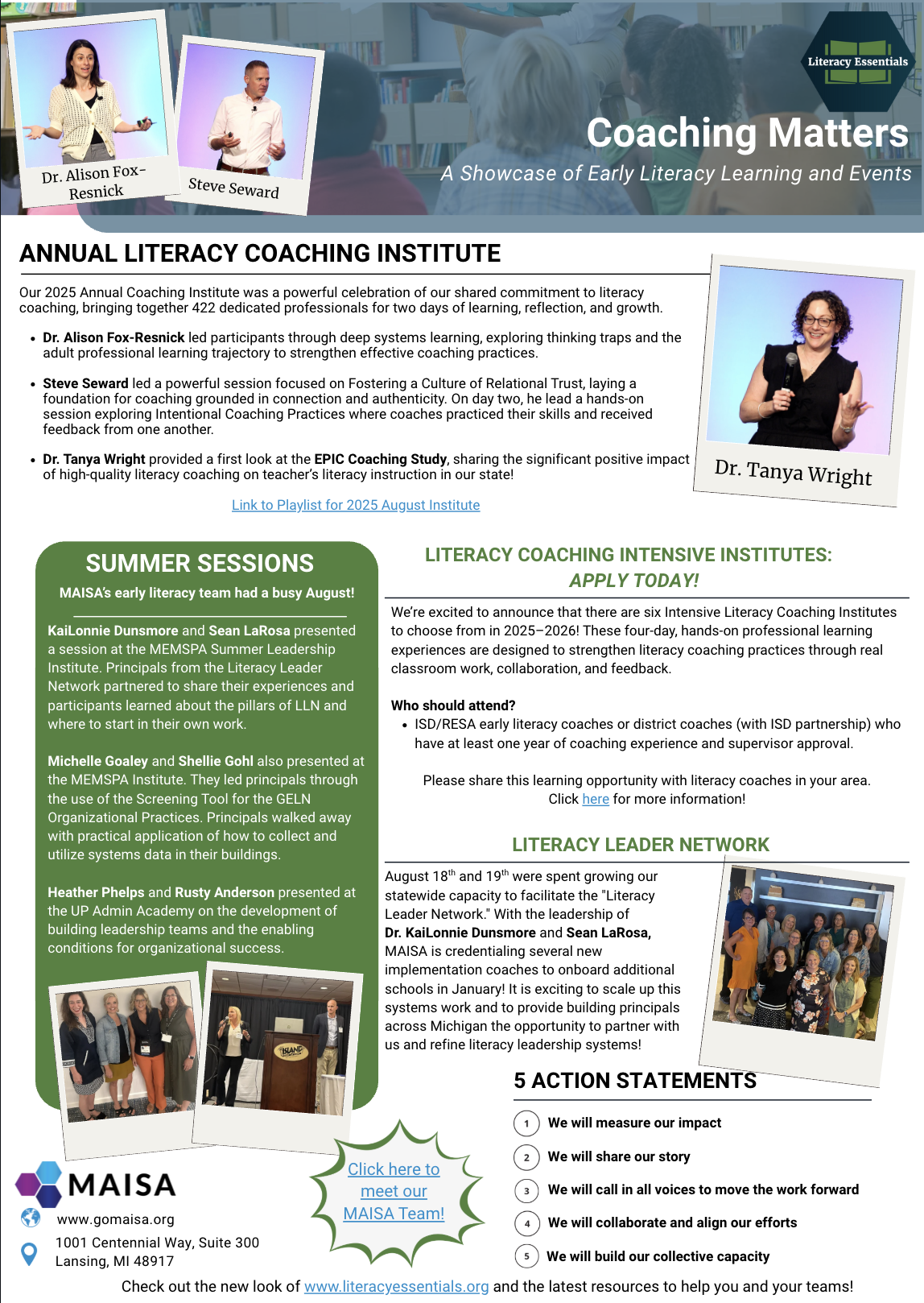 Free Tools: We have two amazing MAISA tools that are being used across Michigan and are incredibly valuable as they relate to literacy. MiREAD and MiCoach Compass. Please consider connecting with our team. We can provide a demonstration for you as well. Details are below.