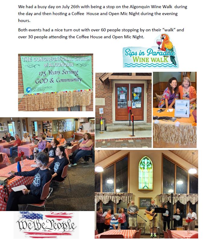 The main topic to bring back is the Resolutions which were passed and which will dictate the focus of the United Church of Christ over the next three years. The hope is that we as a congregation can choose a couple of these as mission or other actions in the near future. These can be found on ucc.org under All Things General Synod 35 (scroll down to the orange boxes). While in this, take a look at worship or Plenaries if you’d like.