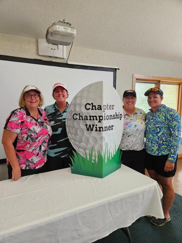 | | We had an outstanding Chapter Championship on Saturday, the 16th at Chestnut. 30 participants broken into 4 scramble teams and 14 stroke players. Congratulations to the winners and thanks to ALL for participating! | | Winnning scramble team: Lea Smith, Lori Stinson, Jessica Steward and Chelsea Dick | | |
