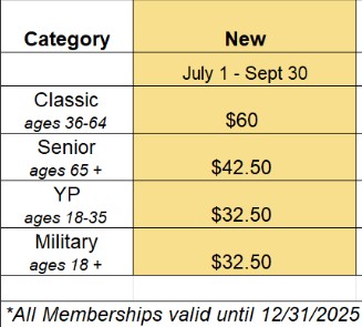Any new (not rejoining) members that join after July 1st will be prorated to a 50% rate for the rest of the year.