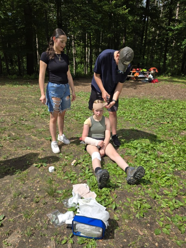 For the first two days of camp, all students participated in rigorous Wilderness First Aid trainings led by Shelly Wollerman. The trainings included learning how to scope out a helicopter landing zone for extreme emergencies, how to build a litter for transporting injured individuals, and how to address various wounds and injuries potentially encountered in the forest industry. For an assessment one student would choose their “favorite” injury that the rest of the group would then need to assess and treat. This activity not only gave these students valuable life saving skills, but it worked as a great team building exercise. Students then had the opportunity to choose a “pathway” to focus on for the remainder of camp.