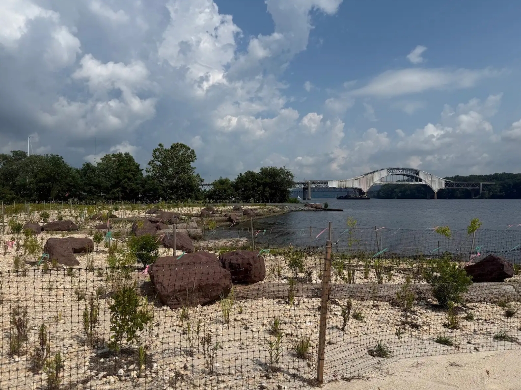 The third phase of the Water St. project in Havre de Grace has just gone through its last phase of construction! This is a unique, deep-water living shoreline that was constructed at 17 ft deep to show that nature-based solutions can mitigate flooding and dissipate wave energy in deep water environments. The project creates native habitat, tidal marshes, and a dune habitat. This phase improves water quality, reduced impervious surfaces, and provides a soft kayak launch to support recreational activities.