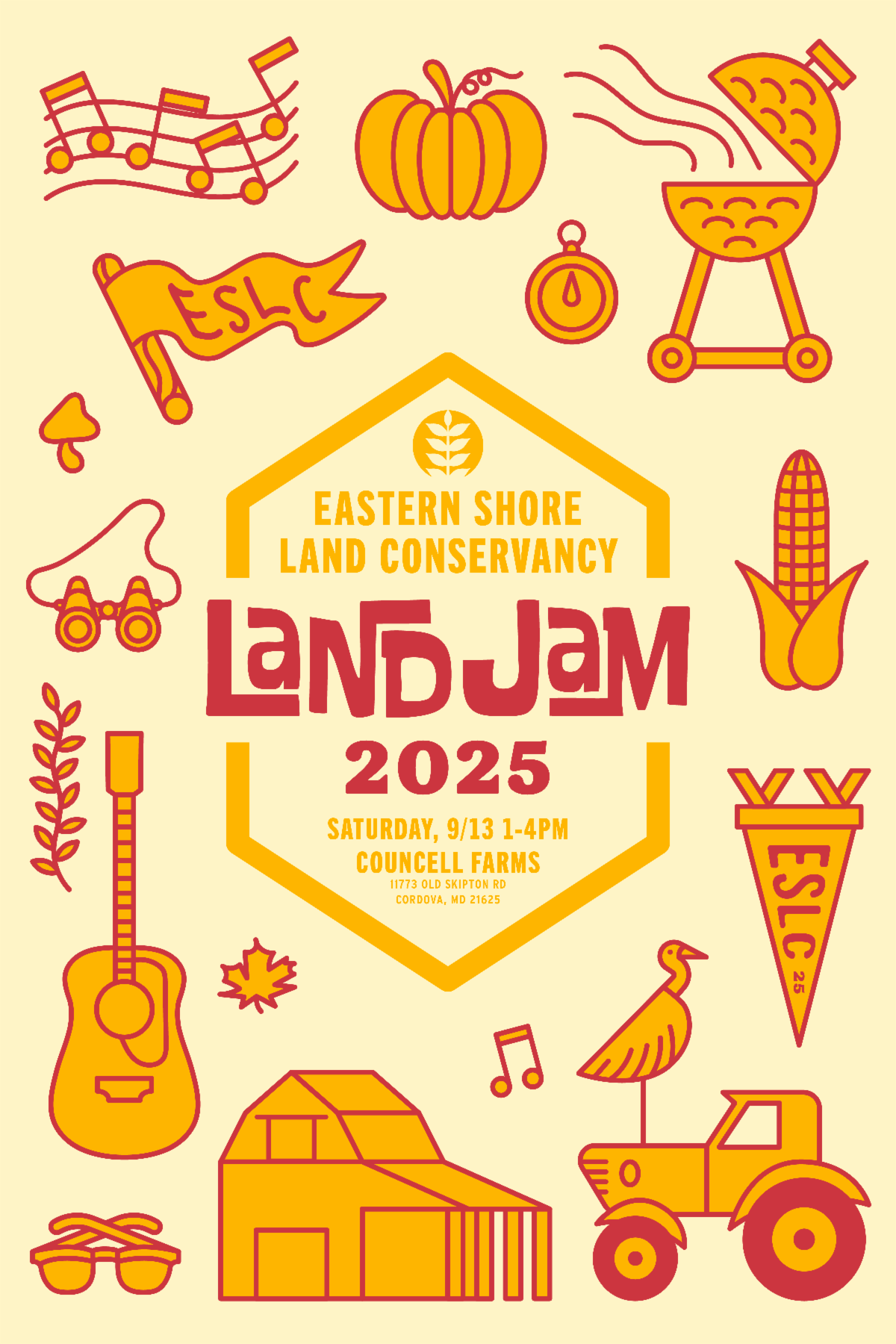 Join Eastern Shore Land Conservancy in celebrating our 35th anniversary at our third annual LandJam! This year, this family-friendly afternoon will be at the wonderful Councell Farms during their opening weekend! LandJam features live music, great food, yard games, and the many fall attractions already available at Councell Farms, including a corn maze, jumping pillow, combine slide, and pumpkins. We can’t wait to see you there!
