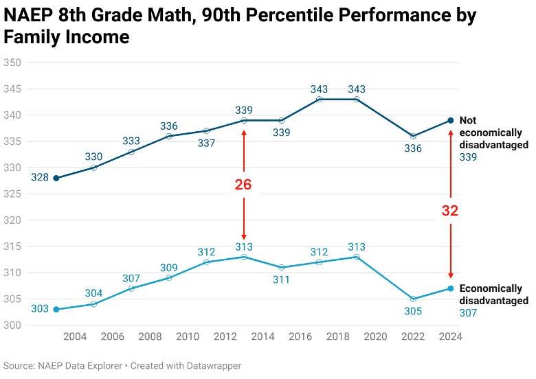 The change has produced dramatic differences in results. For example, the share of 8th graders deemed proficient in reading nearly doubled, rising from 22% in 2024 to 46% under the new system.