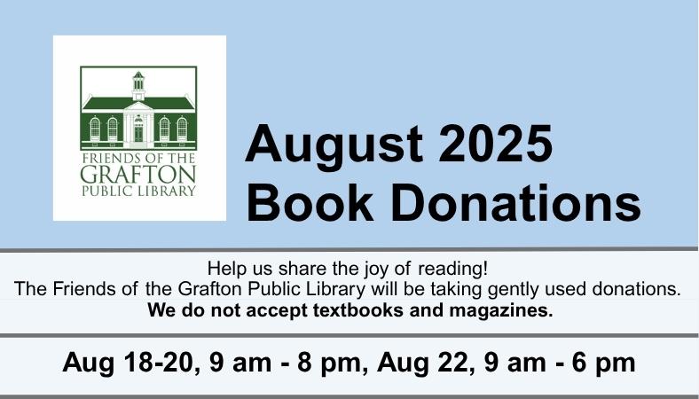 Support the Friends of the Grafton Public Library and stock up on some great items! Browse a selection of gently used books, games, DVDs and more.