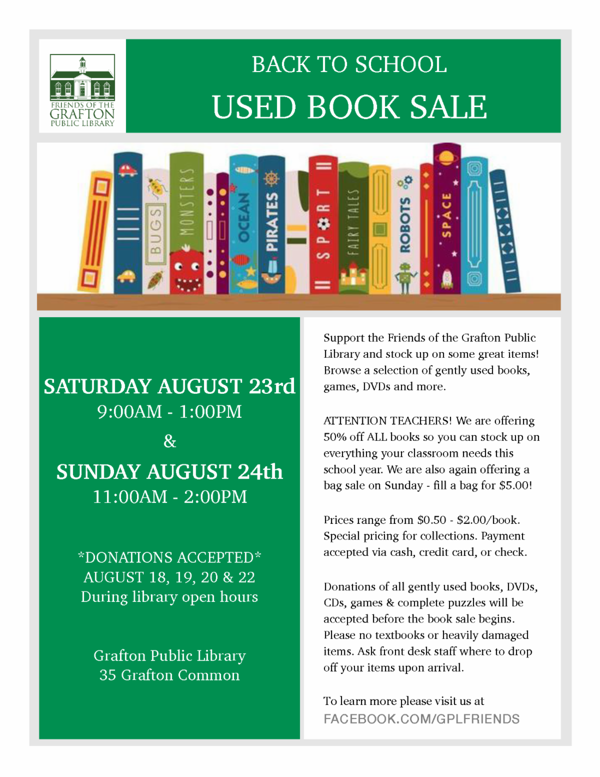 | | | | | Friends of the Grafton Public Library Used Book Sale | |