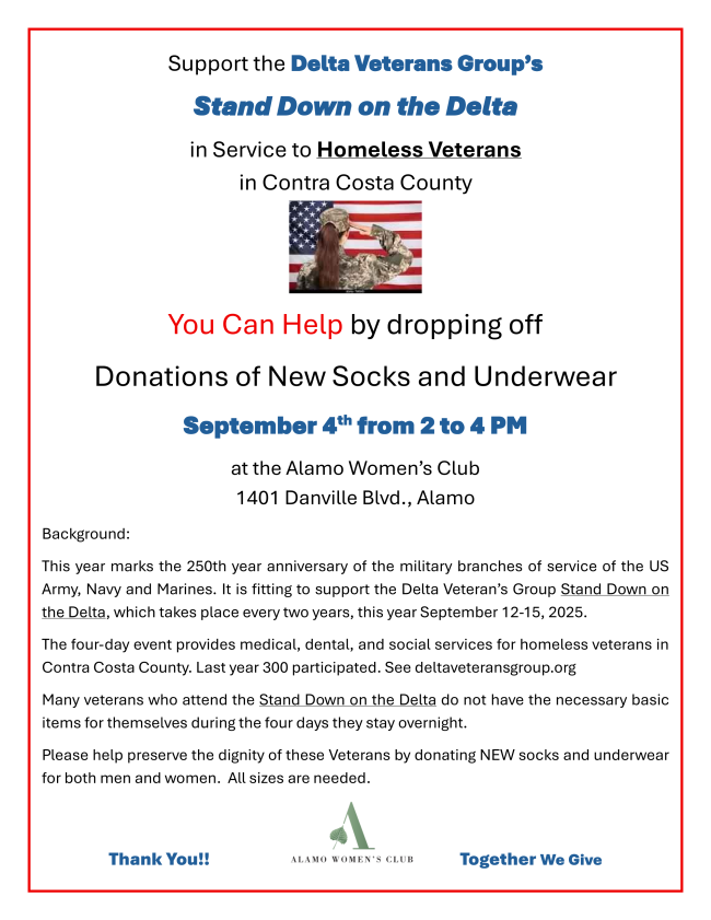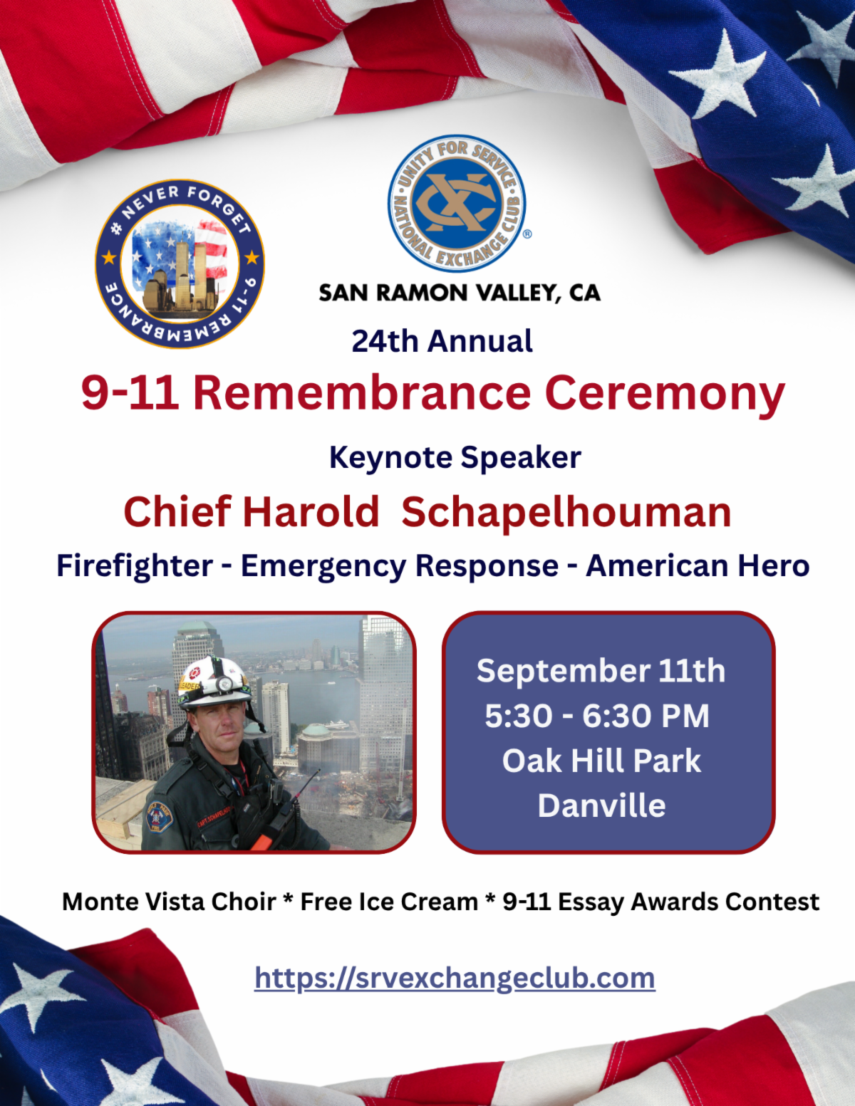 | | The Exchange Club of San Ramon Valley invites all to its 24th Annual 9/11 Remembrance Ceremony on Wednesday, September 11th, from 5:30-6:30 PM at the All-Wars Memorial at Oak Hill Park, 3005 Stone Valley Road in Danville. The ceremony honors the bravery and sacrifice of the fire, police, and military personnel who responded to the 9-11 attacks. | | Stand Down on the Delta - a Hand Up for Our Veterans! | | Contra Costa Urban Limit Line - Initial Study Published | | |