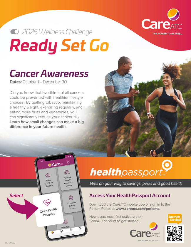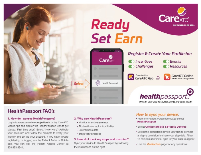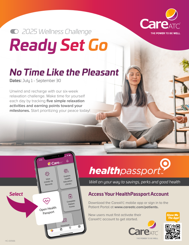 Log in to www.careatc.com/patients or the CareATC Mobile App and click on the HealthPassport icon to get started.
