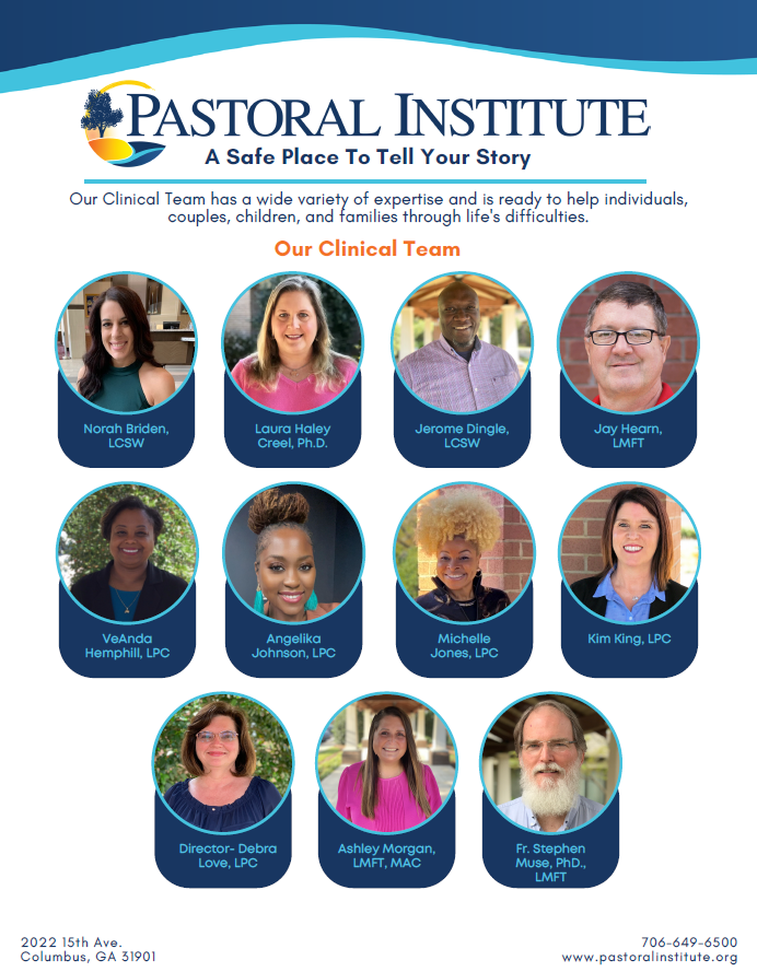 If you have any questions about your benefit or need assistance in making an appointment, please contact Christy Scrivner at the Pastoral Institute. She will be happy to help. Her contact information is 706-649-6507 ext. 1243 or you can email her at cscrivner@pastoralinstitute.org.