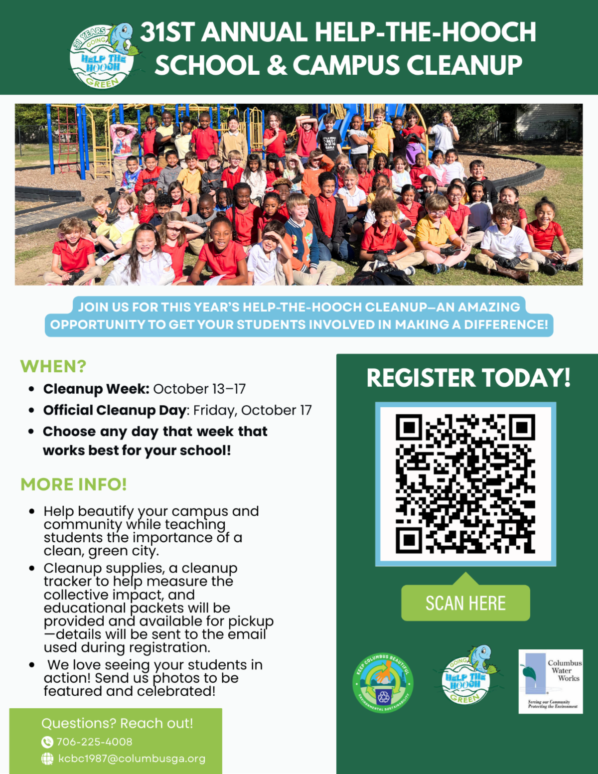 Join us for this year’s Help-the-Hooch cleanup—an amazing opportunity to get your students involved in making a difference!