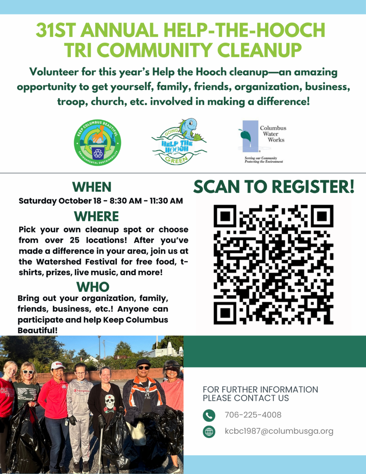 Volunteer for this year’s Help the Hooch cleanup—an amazing opportunity to get yourself, family, friends, organization, business, troop, church, etc. involved in making a difference!