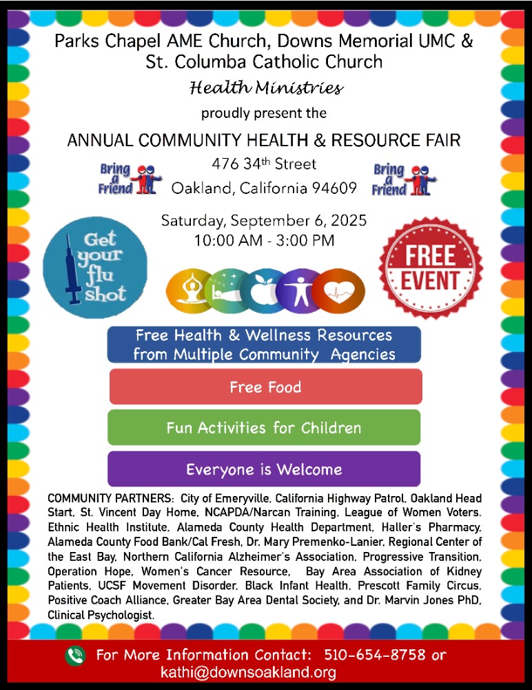 Mark your calendars for Saturday, September 6th from 10:00 AM – 3:00 PM at 476 34th Street, Oakland! This free event, hosted by Parks Chapel AME Church, Downs Memorial UMC, and St. Columba Catholic Church, will feature health and wellness resources, flu shots, free food, and fun activities for children. Saint Vincent's Day Home will have a booth at the fair, alongside many community partners, to share resources and connect with families. Everyone is welcome—bring a friend and join us!