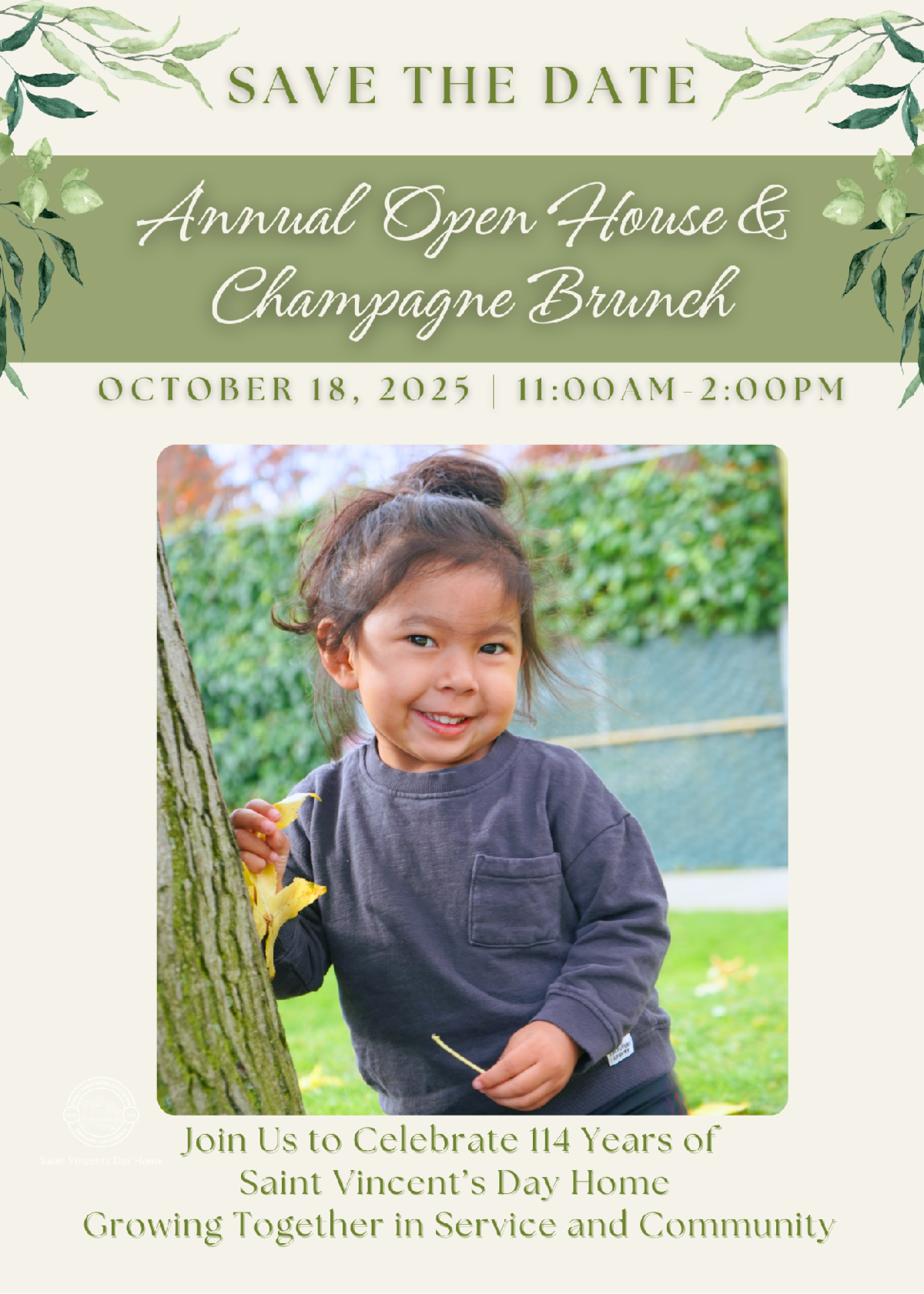Join us on Saturday, October 18th for our Annual Open House & Champagne Brunch as we celebrate 114 years of Saint Vincent’s Day Home. Mark your calendars—you won’t want to miss this special day of community, connection, and celebration!