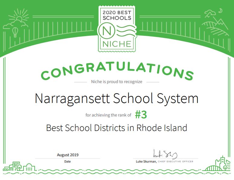 The Narragansett School District was ranked the #3 district in the state!