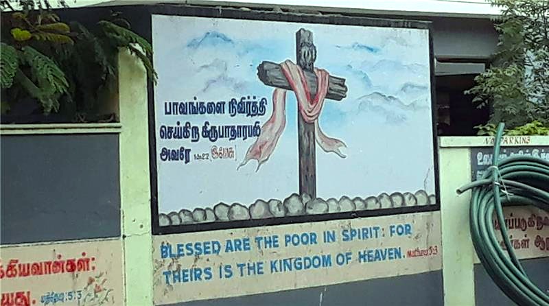 | | | | Pictured above: Matthew 5:3 calls to passers-by in Chennai, India. | | |