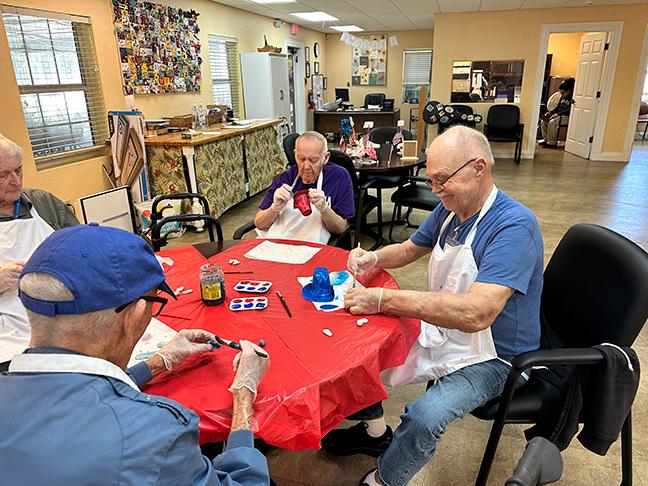 In July, our friends at Daybreak Adult Day Center enjoyed a “Senior Stars Celebration” complete with patriotic decorations, sunglasses, and other fun festivities. The clients had a blast painting accessories for their handmade gnomes and making themed artwork using paper towel cardboard rolls. It is never too late to learn a new way to paint or make a craft! Everyone finished out their celebration with delicious red, white, and blue ice pops that made their celebration even sweeter. To learn more about our respite care program at Daybreak Adult Day Center, click here. | | |