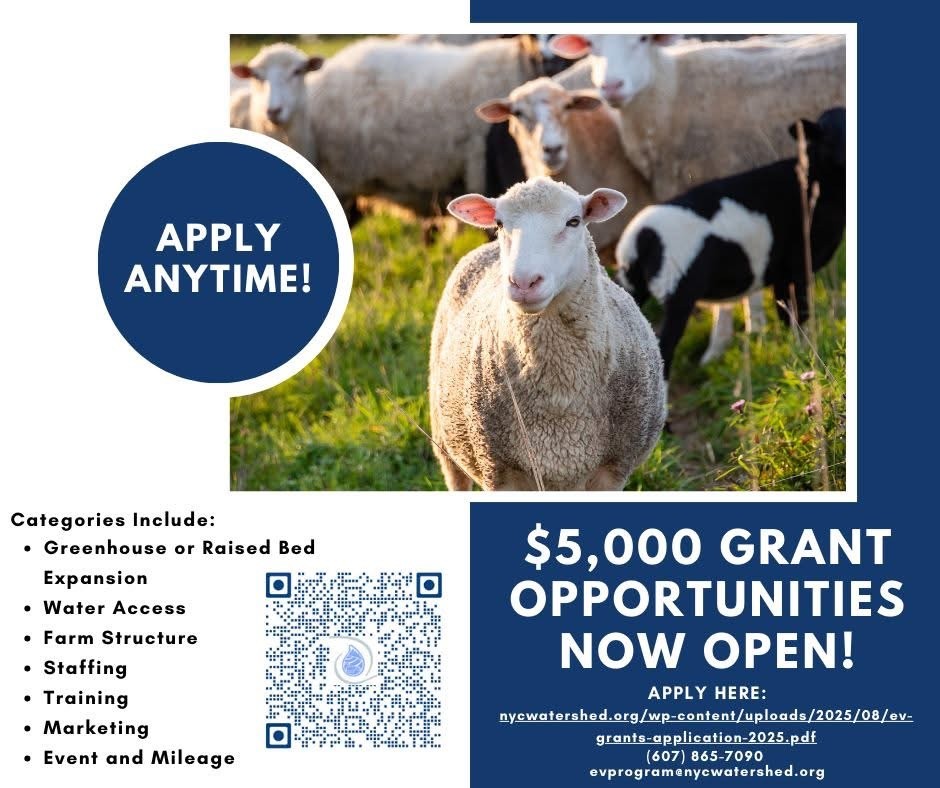 The Economic Viability Micro Grants Program is now accepting applications. This program supports NYC Watershed farm and forest businesses with up to $5,000 per fiscal year in reimbursable funding to strengthen long-term economic success.