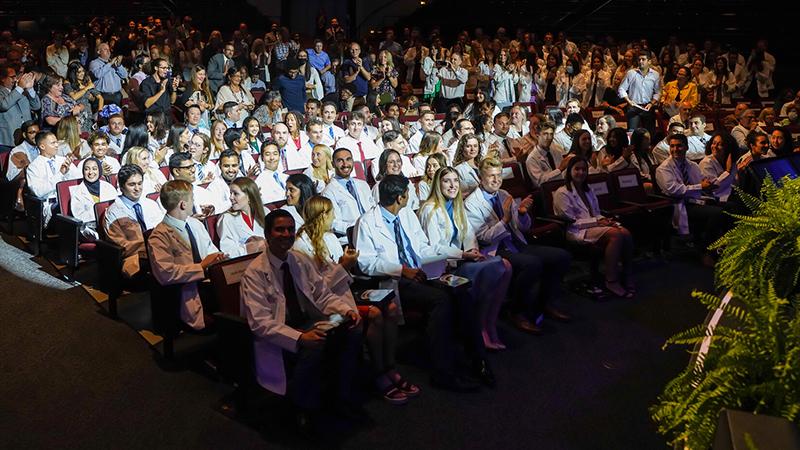 On Friday, August 5, 2022, the medical school's class of 2026 were cloaked with their first doctor's white coat during the White Coat Ceremony. This time-honored event is celebrated at medical schools around the nation and symbolizes entry into the medical profession. This year's keynote speaker was Samer Fahmy, M.D., the Vice President, and Chief medical officer at Boca Regional Hospital, who also serves as an Affiliate Clinical Associate Professor and the Associate Clinical Dean for Academic Affairs at FAU.