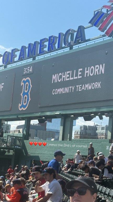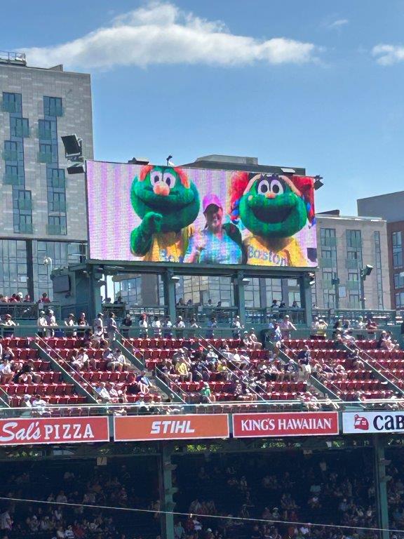 Featured Picture: Michele Horn, Program Manager of CTI's Volunteer Center - shown with the Red Sox mascots on the Jumbotron – Representing CTI as a Leader of the Pack!