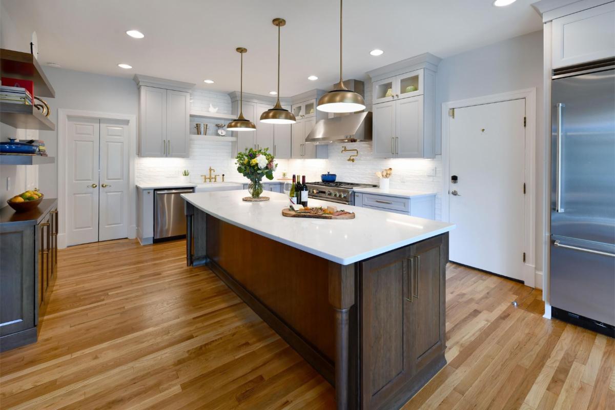 After relocating to the Bethesda, MD area and purchasing her new home, our client knew the kitchen needed to reflect her style and lifestyle. The existing space felt too masculine, dark, and overly modern, with a multi-level island that lacked both function and flow.
