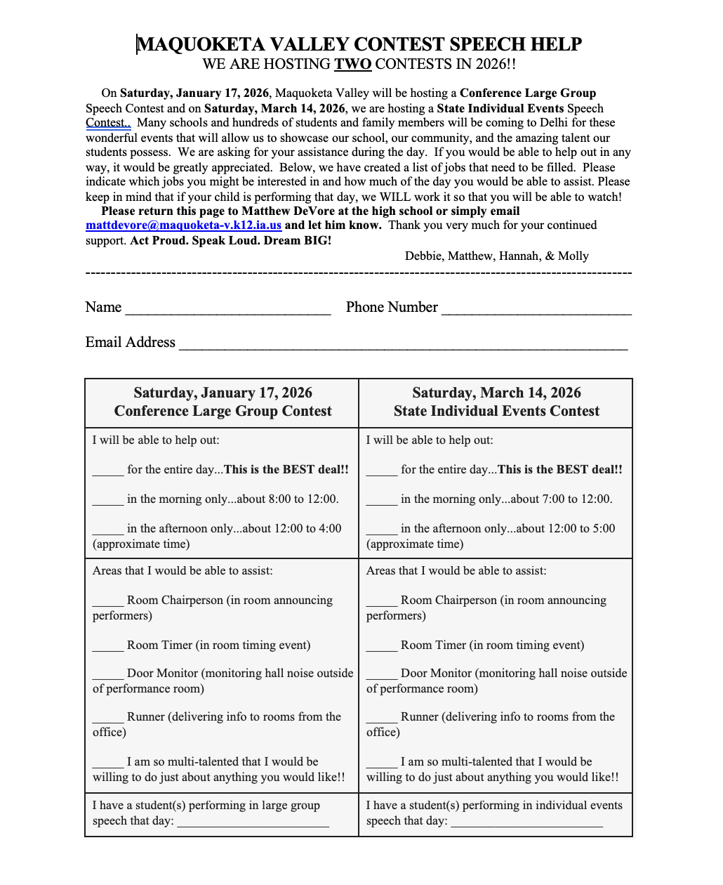If you have any questions pertaining to the Free and Reduced Meals, you can contact Morgan Nefzger at morgannefzger@maquoketa-v.k12.ia.us