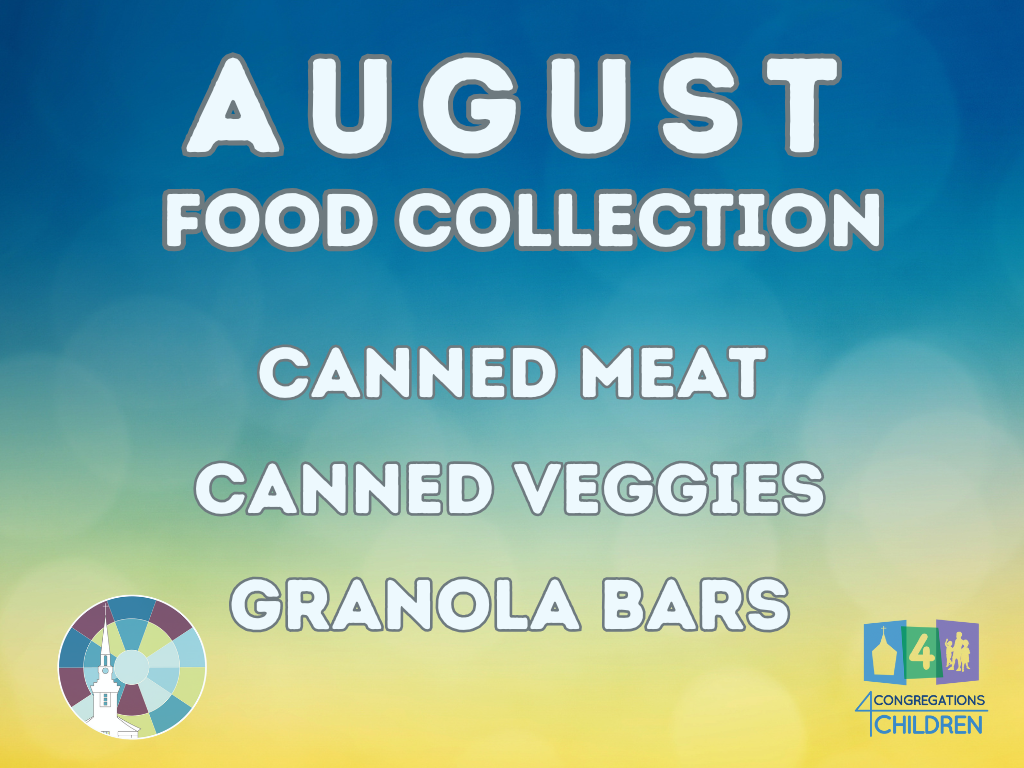 August 3 is Cereal Sunday. To help stock the food pantry at The Salvation Army, please bring cereal or other canned/dry goods. Thank you!