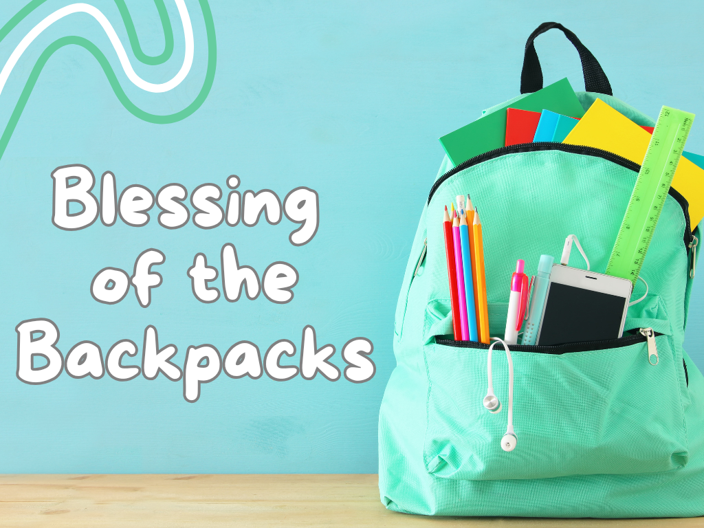 As a new school year begins, we want to send our students and teachers off with encouragement, love, and prayer. All students—from preschoolers to college students—as well as teachers, school staff, and administrators are invited to join us for our Blessing of the Backpacks on Sunday, August 24 during both the 9:00 AM and 11:00 AM worship services.