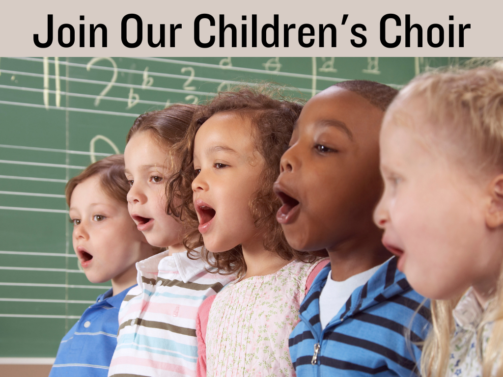 Rehearsals will take place on Sunday mornings from 9:30-10:00 a.m. in the Choir Room beginning Sunday, September 7. The choir is open to children in kindergarten through 5th grade.