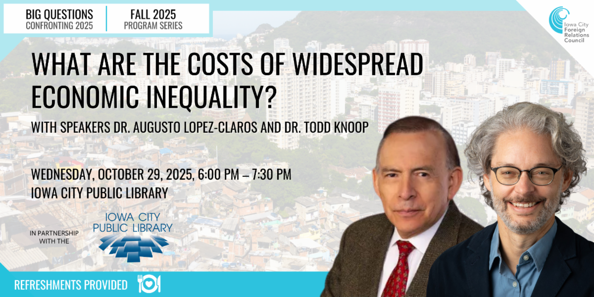 First, we are proud to announce ICFRC’s Fall 2025 Program Series, featuring four public events that explore critical global issues shaping our lives today. Topics will include healthcare access, immigration policy, economic inequality, and the balance of power in democracy. These programs are designed to bring people together across perspectives to consider the challenges ahead and the leadership we need to meet them.