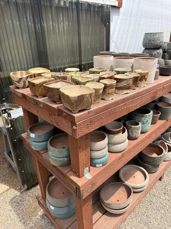 Pottery has been restocked, so be sure to check out the new selections. Jerry Garner also brought some more handmade pots. Don't forget to explore the new area leading to the citrus trees, fruit trees, and edible plants (and the new sign!), since this month our August sale features edible berry plants and citrus and fruit trees.