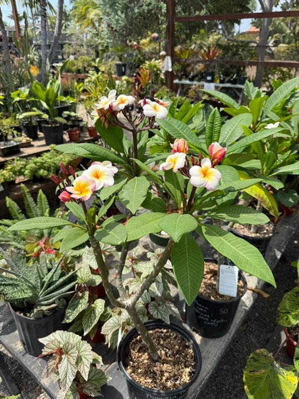 Growing plumeria in pots helps control their size. They tolerate being in a pot for an extended period better than some other plants. Fertilize regularly (Agrowinn 4-4-6 or Foliage Pro) during the warm seasons in spring and summer for big, healthy leaves, and switch to Ultra Bloom for vibrant flower displays.