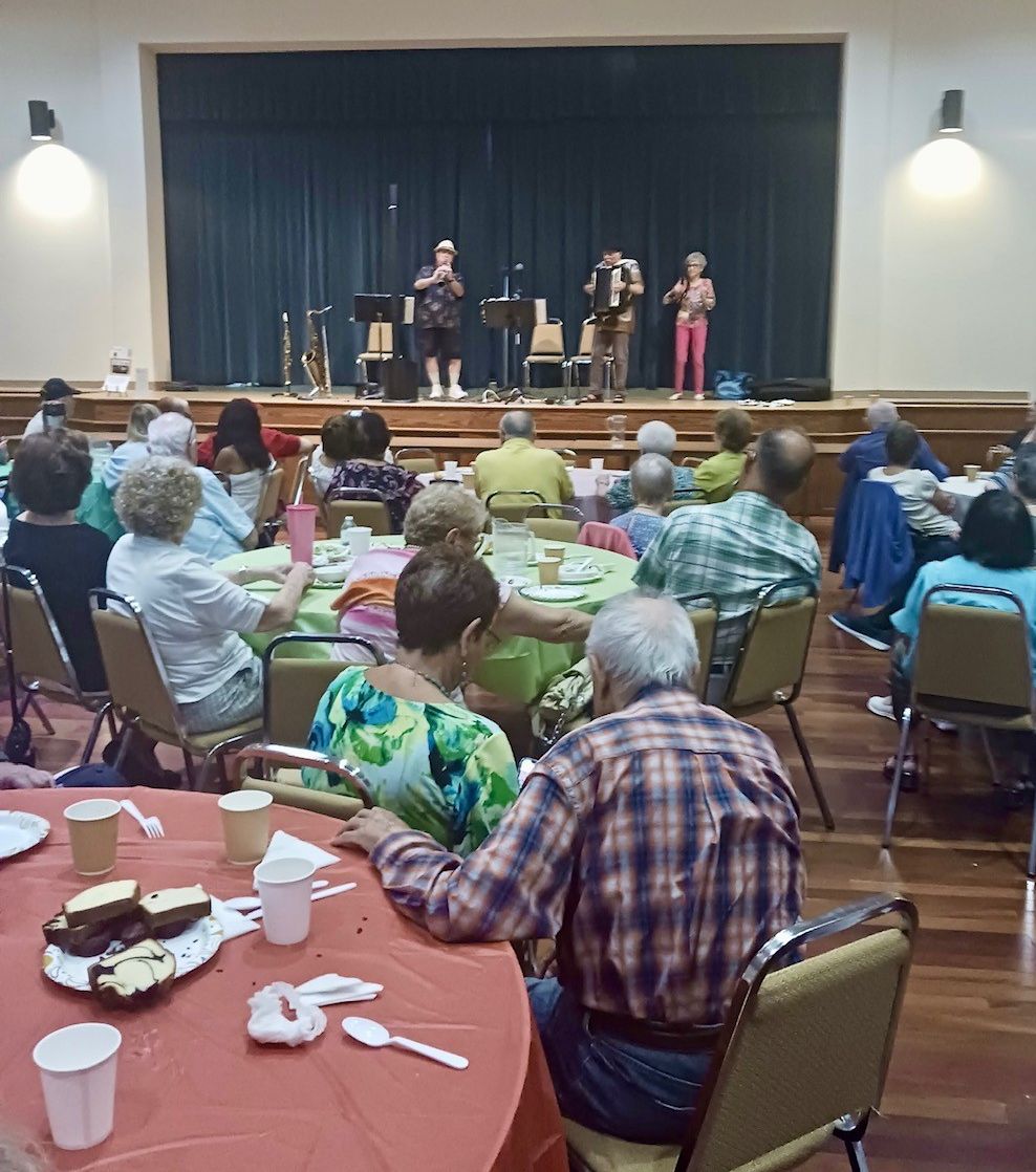 Last month, Ed Goldberg and The Odessa Klezmer Band performed to the delight of all in attendance. For August, our program features multi-instrumentalist and vocalist, Cecilia who will perform jazz standards on the saxophone and flute.