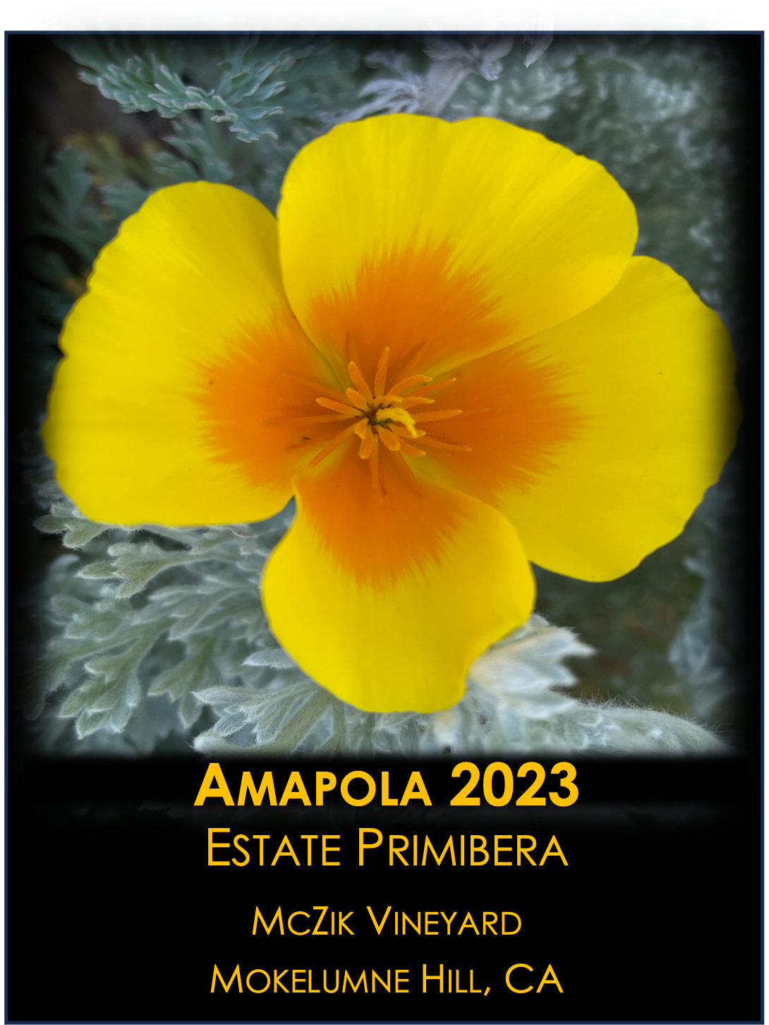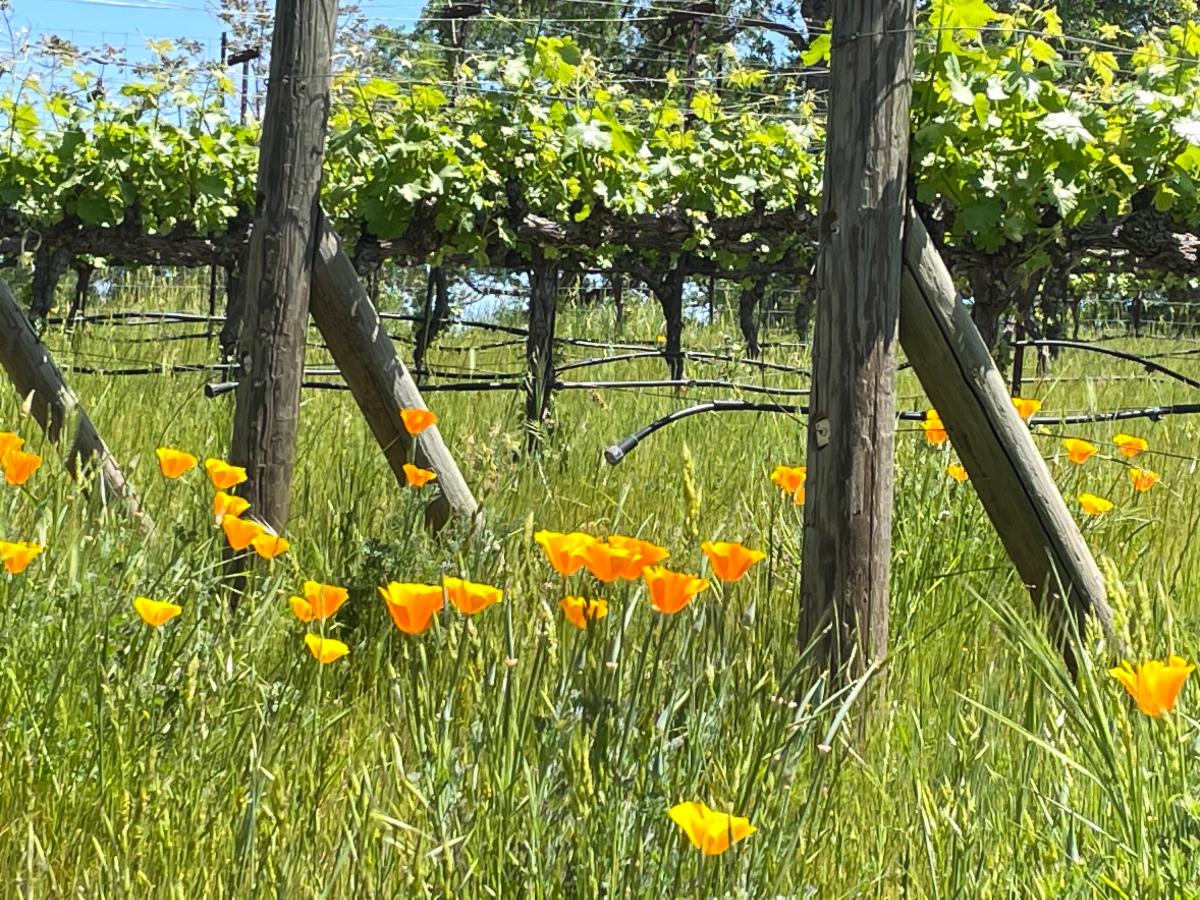 Alongside our Barbera vines, California poppies bloom, providing inspiration for our wine’s name and label. The Spanish word for poppy is Amapola. Our latest bottling is called Amapola 2023 Primibera.