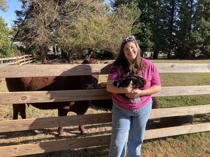 Did you know that we offer internships to high school students during the school year? One of our new interns for this school year is Liya Dostie! Liya began volunteering this Fall and has dove head first into so many things! She has primarily helped out with our guest engagement during Afternoon Explorations and has just started helping us with our field trip lessons as well. Liya is a senior in high school and is homeschooled, which allows her to have a flexible schedule that fits well with our schedule. During the school year, we interview and onboard high school students that have availability on Thursday and Friday afternoons to help us with Afternoon Explorations. Interns get trained to handle animals at Roper Mountain and engage with the public in a variety of ways at Nature Exchange, in Harrison Hall, and the Living History Farm.