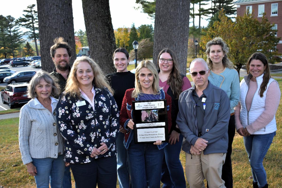 | Avesta Housing Vice President of Senior Living Katy Smith, center, displays the Property of the Year award for 75 State Street with (L-R): Ann Stinehour, senior activity assistant; Tylor Devos, activities coordinator; Lynn Coyle, director of independent living; Hallie Kearns, move manager; Allison Curtis. health services supervisor; Dennis Burnham, driver and maintenance technician; Devin Yard, director of assisted living; and LouAnn Tovey, finance associate | | Federal funding is needed to make homelessness rare and brief | | Florence House in Portland, which provides affordable housing and permanent supportive services for women who have experienced chronic homelessness, celebrated its 15th anniversary earlier this year. Proposed federal cuts threaten to severely curtail services at Florence House and other supportive housing in Maine. | | |