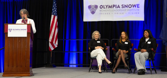 The event was held for more than 300 Olympia’s Leaders (high school girls who participate in the program), more than 125 of their mentors, and other Leaders Network guests. The facilitated panel focused on the value of building, maintaining, and seeking support from a network. Panelists shared how their values guide them when making important life decisions and how they tapped their mentors, networks, and other people who know them well for support.