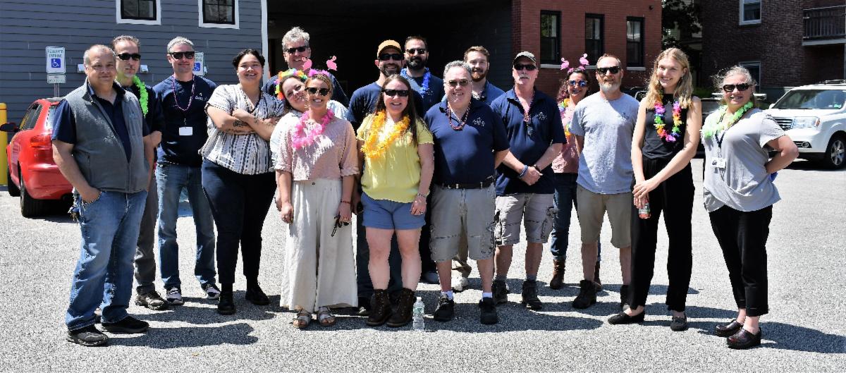 Avesta staff at the cookout (left to right): Maintenance Technician II Vinny Dorazio; Senior Maintenance Technician Shannon McMahon; Resident Service Manager Nick Kjeldgaard; Applicant Services Coordinator Audrey Ramirez-Bardales; Maintenance Technician Warren Moorhead; Applicant Services Manager Emily Pelletier; Property Manager Taylor Williams; Maintenance Technician Shayne McDonald; Senior Property Manager Caitlin Holland; Maintenance Technician II Kosta Suli; Custodian Peter Cummings; Resident Service Coordinator Samuel Schwartz; Maintenance Technician II Matt Lorello; Resident Service Coordinator Meredith Holmes; Maintenance Technician Team Lead Jacob Bornstein; Property Manager Elizabeth Lange; and Resident Service Coordinator Andrea Jaquith. | |