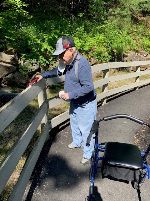 Tony, a resident at the Inn, has been waiting all spring to get outside to scrape and paint this fence! | |